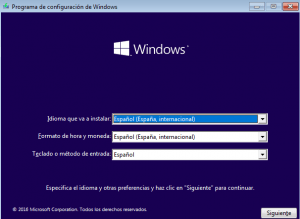 Necesitamos el CD o el USB con la imagen de instalación de Windows 10, vamos lo que se usa para instalar un PC nuevo. Introducimos el CD/USB y cuando salga la primera pantalla de instalación donde salen los idiomas para empezar a instalar Windows 10 (ver imagen siguiente), pulsamos las teclas SHIFT+F10 y saldrá una ventana de MS-DOS donde escribiremos lo siguiente: