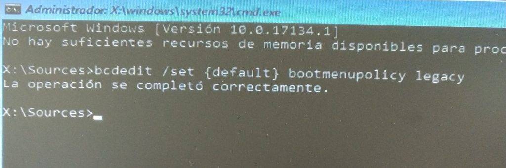 bcdedit /set {default} bootmenupolicy legacyLos { } se hacen con la tecla ALT GR